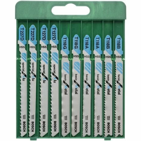 Bosch 10tlg. Stichsägeblatt-Set T-Schaft T 118 A (2x); T 118 B (2x); T 118 G (2x); T 127 D (2x); T 227 D (2x)