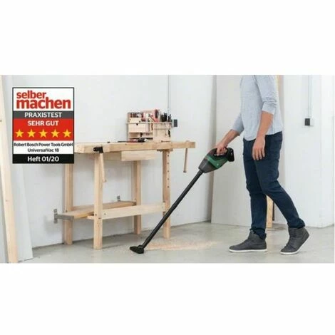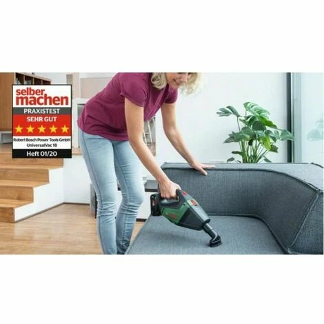 Dieser leistungsstarke und mobile Akku-Staubsauger beseitigt selbst schwereren Schmutz mit Leichtigkeit. Der Handstaubsauger UniversalVac 18 wird mit Verlängerungsrohren und einer Bodendüse geliefert, wodurch er sich perfekt zur bequemen Reinigung von Böden eignet. Mit der Fugendüse lassen sich enge Stellen gut erreichen und die Bürstendüse reinigt schnell verschiedenartige Oberflächen, z. B. Sofas. Der Vorfilter im Staubsauger minimiert ein Verstopfen des Hauptfilters, der dank seines flexiblen Rahmens leicht zu reinigen ist. Ein kraftvoller 18-Volt-Akku sorgt für hohe Saugkraft