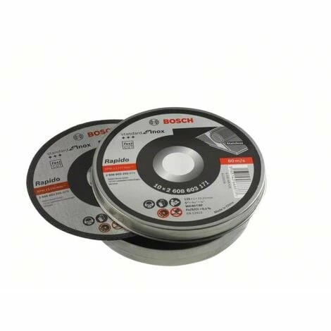 Bosch Ø 125mm Trennscheibe gerade Standard for Inox – Rapido WA | 10er-Pack in Dose | Hersteller-Nr.: 2608603255 | EAN: 3165140668873 | • Trennscheibe gerade Standard for Inox – Rapido