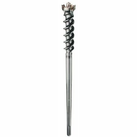 Durchbruchbohrer SDS-max-9 Break Through. Durchmesser: 45 mm. Arbeitslänge: 450 mm. Gesamtlänge: 600 mm. Geeignet für Durchbrüche mit Durchmesser von 45 mm bis 80 mm in Beton. Mauerwerk. Kalksandstein z. B. für Außenanschlüsse von Kabeln oder Rohren. Einteiliges Werkzeug. Glockenförmiger Bohrkopf mit asymmetrisch angeordneten Hartmetallstiften und Zentrumshartmetallschneide. Großvolumige Förderwendel. Konischer Schaft. Hinweis: Durchbruchbohrer immer nur in geeigneten Hammerklassen einsetzen. da Überlastgefahr. Bedienungsanleitung des Bohrhammers beachten.