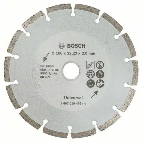 Diamanttrennscheibe für Baumaterial. Durchmesser: 180 mm, Bohrungsdurchmesser: 22,23 mm, Schnittbreite: 2,0 mm, max. r.p.m: 8500 1/min. Diamttrennscheibe für jeden Einsatz. Alle Baumaterialien problemlos bearbeiten: ob innen oder außen, in bestehenden Baukonstruktionen oder um neue Pläne umzusetzen. Unsere Schleifmittel sind für sämtliche metallischen Werkstoffe, Klinker und anderes Gestein geeignet. Nach den höchsten Qualitätsstandards gefertigt (EN13236 und OSA) für höchstmögliche Sicherheit. Schneller Trennschnitt. Für alle Baumaterialien