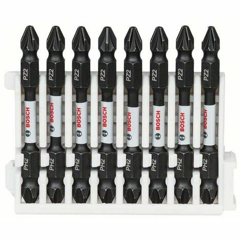 Das Schrauberbit mit Doppelklinge ist äußerst robust und selbst beim großen Drehmoment von Schlagschraubern ideal für schwere Arbeiten geeignet. Die spezielle Torsionszone verleiht den Bits extreme Haltbarkeit für Dauerbelastung. S2-modifizierter Stahl und optimierter Wärmebehandlungsprozess verleihen höchste Haltbarkeit für Bestleistungen, selbst bei umfangreichen Montagen und schweren Industriearbeiten. Es besitzt einen Außensechskantschaft der Größe 1/4 Zoll zur Verwendung mit Bohrschraubern, Schraubendrehern und besonders mit Schlagschraubern. Dieses Bit ist Teil des Bosch Pick and Click-Systems, das individuell zusammenstellbare Zubehörsets für absolut flexible Bit-Sortimente ermöglicht. Einrasteinschübe sichern einzeln gekaufte Bitpacks für eine individuelle Sammlung und den einfachen Austausch von alten Bitpacks. Das 36-teilige Pick and Click Impact Control Schrauberbitset enthält auch Steckschlüssel sowie den Impact Control-Universalhalter mit Standardmagnet und den Impact Control-Universal Holder Quick Release. Diese Halter sind ideal für besonders guten Halt der Bits bei allgemeinen Schraubarbeiten mit Elektrowerkzeugen geeignet. Die Quick-Change-Funktion ermöglicht hingegen schnelle und einfache Bitwechsel und einen kraftschlüssigen Sitz des Bits. Länge mm: