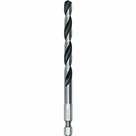 Der HSS-Spiralbohrer PointTeQ mit Sechskantschaft liefert schnelle Ergebnisse beim Bohren in Metall. Der für Hochgeschwindigkeitsbohrungen entwickelte Bohrer erzeugt minimale Wärme und macht den Bohrer verschleißfest. Das PointTeQ-Design an der Bohrspitze sorgt für kontinuierliche Schärfe und hohe Langlebigkeit. Die selbstzentrierende Spitze verhindert Wandern und ermöglicht schnelles und einfaches Anbohren. Die mit Schwarzoxid beschichtete Bohrspirale ermöglicht ein schnelles Abtragen der Späne. Für eine noch höhere Zuverlässigkeit bietet der Sechskantschaft des Bohrers Stabilität und eine feste Verbindung zwischen Bohrer und Futter. Der Körper des Bohrers wird gestärkt und es besteht ein niedrigeres Bruchrisiko für Bohrer mit einem Durchmesser von weniger als 6 mm. Dieser PointTeQ Bohrer ist zum Bohren von Durchgangs- und Zentrierlöcher in legierten und unlegierten Stahl, in Nichteisenmetalle, Gussstahl, Gusseisen und Kunststoff geeignet. Die Bohrspitze des HSS-Spiralbohrers PointTeQ mit Kreuzanschliff ermöglicht perfektes Zentrieren. Bohrer, Typ N (kleiner Seitenspanwinkel) mit 135°-Design, gemäß DIN 338 hergestellt. Er ist kompatibel mit Sechskantschaftsystemen (1/4-Zoll) und kann universell mit Schlagschraubern, Bohrschraubern und Bohrständern verwendet