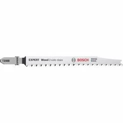 Oben wie unten sehr sauberer Abschluss – Unter Tischlern und Schreinern war es schon immer eine Kunst sicherzustellen, dass der sichtbare Teil des Arbeitsmaterials die „saubere Seite“ eines Stichsägenschnitts zeigt. Manchmal muss man das Werkstück zum Sägen umdrehen oder sägt von der Unterseite, um die gewünschte Schnittqualität auf der Sichtseite zu haben. Oder du verwendest das Expert ‘Wood 2-side clean’, welches dank seiner Zahngeometrie auf beiden Seiten einen perfekten, ausrissfreien Schnitt bietet. Das ausgeklügelte Design dieser Stichsägeblätter macht nach dem Schneiden keine weiteren Arbeiten erforderlich. Durch die Zähne wird ein Ausreißen beim Aufwärts- und Abwärtshub vermieden. Dies ist perfekt für Profis, die Zeit sparen und ihren Kunden Arbeit von höchster Qualität bieten möchten. Mit seinen besonders scharfen, präzisionsgeschliffenen Zähnen eignet sich das Bosch Expert ‘Wood 2-side clean’ Stichsägeblatt gut zum Schneiden von Weichholz mit einer Dicke von bis zu 50 mm. Möbelschreiner können ein perfektes Ergebnis erzielen und verlieren nicht nach jedem Stichsägenschnitt Zeit durch Schleifen. Erhältlich für gerade Schnitte (T308B), für Kurvenschnitte (T308BO) und für genaue Winkelschnitte (T308BP) Passend für alle