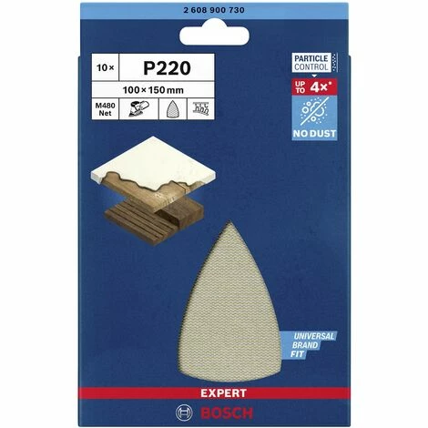 Bis zu 4-mal bessere Staubabsaugung als ein Standard-Schleifpapier – Staub – Du bist damit bedeckt, du kannst ihn schmecken. Er setzt dein Schleifpapier zu, wodurch dieses praktisch unbrauchbar wird. Er bedeckt alles im Raum und durchdringt das ganze Haus. Staub ist der größte Nachteil beim Schleifen. Doch durch das Particle Control-System hat sich dieses Problem weitgehend erledigt. Bosch Particle Control stellt sicher, dass alle Staubpartikel in dein Vakuum oder deinen Filter gesaugt werden. Das Bosch Expert M480 Netzstruktur-Schleifblatt steht an vorderster Front dieses Systems: Partikel werden gerade durch das offene Netz geführt, anstatt die Oberfläche zuzusetzen oder die Luft zu verschmutzen. Dies sorgt für ein hohes Maß an Effizienz und eine sehr lange Lebensdauer. Vielen Experten fällt es schwer zu glauben, dass wir das größte Problem beim Schleifen beseitigt haben. Es war zwar nicht einfach, aber wir haben es geschafft. Schleifen ohne Staubbildung mit dem Bosch Expert M480 Schleifnetz. Einfache Befestigung mit