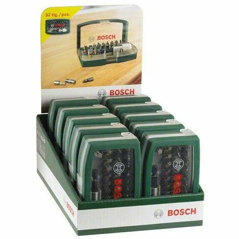Schrauberbit-Set. 32-teilig. Extra-harte Qualität. Blaue Version. Für jedes Projektvorhaben – Schnelle, unkomplizierte Anwendung. Schnell den richtigen Schrauberbit zur Hand mit den farbcodierten Bosch Schrauberbits. 31 Schrauberbits in 25 mm Länge für alle gängigen Schraubentypen und -größen. Schnellwechseluniversalhalter mit Verriegelung für sicheren Halt der Bits und schnellen Wechsel. Guter Halt der Schraube im Bit durch im Adapter integrierten Magneten. Farbcodierte Bits für den schnellen Überblick und rascheren Zugriff auf den passenden Bit. Praktisch untergebracht in handlicher Box mit praktischem Gürtelclip. Für alle Elektrowerkzeugmarken geeignet. Dieses Set enthält: 31 Schrauberbits mit Farbcodierung und einer Bitlänge von 25 mm. PH 1, PH 2, PH 2, PH 3, PZ 1, PZ 2, PZ 2, PZ 3, S 3, S 4, S 5, S 6, HEX 3, HEX 4, HEX 5, HEX 6, T 10, T 15, T 20, T 20, T 25, T 27, T 30, T 40, Th 10, Th 15, Th 20, Th 25, Th 27, Th 30, Th 40, 1 Schnellwechsel-Universalhalter,