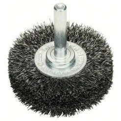 Die Scheibenbürste bietet eine gutes Feinfinish. Sie ist mit gewelltem Draht für leichte bis mittelschwere Reinigungsarbeiten an kleinen Flächen ausgestattet und ideal zum Entfernen von Anlauffarben geeignet. Die Scheibenbürste ist für Reinigungsarbeiten mit hoher Drehzahl von kleineren Stahloberflächen sowie Kanten und Fugen geeignet. Darüber hinaus ist sie ideal zum Entfernen von Rost, zum Schruppen, Mattschleifen und Entfernen von Farbe geeignet. Sie ist bestimmt für Bohrmaschinen mit Schaft 6 mm. Drahtbüsten werden in verschiedenen Stärken für verschiedene Schleifgrade angeboten. Stärkerer Draht arbeitet intensiver und schafft schnell Oberflächen, die allerdings grob sind. Dünnerer Draht sorgt für feinere und glattere Oberflächen. Durchmesser mm: 50, Drahtstärke mm: 0,20, Drehzahl, max. min-1: 4.500, Bürstenbreite mm:
