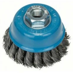 Die Topfbürste Heavy for Metal liefert ein besonders grobes Oberflächenfinish. Diese Topfbürste ist mit gezopftem Draht für besonders intensives Reinigen ausgestattet. Ideal für Metall und geeignet für Reinigungsarbeiten wie Entfernen von starkem Rostbesatz, Unterbodenschutz, Farbe und Lack von mittelgroßen bis großen Stahlflächen. Sie ist für die Verwendung mit Winkelschleifern Gewinde M14 bestimmt. Drahtbüsten werden in verschiedenen Stärken für verschiedene Schleifgrade angeboten. Stärkerer Draht arbeitet intensiver und schafft schnell Oberflächen, die allerdings grob sind. Dünnerer Draht sorgt für feinere und glattere Oberflächen. Durchmesser mm: 65, Drahtstärke mm: 0,35, Drehzahl, max. min-1: 12.500, Gewinde M: 14, Für Winkelschleifer, mind. ø (mm):