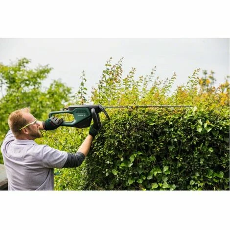 Leichte und ergonomisch ausbalancierte Heckenschere für problemlose Bedienung. Dank dem umlaufenden Schalter lässt sich die Heckenschere in allen Arbeitssituationen bestens kontrollieren – auch bei Überkopfarbeit.