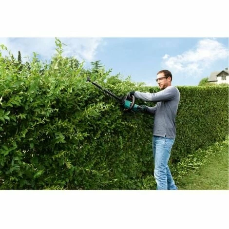 Akku-Heckenschere AHS 50-20 LI. In einem Zug zu einem perfekten Heckenschnitt. Die Quick-Cut-Technologie sorgt dafür. dass Zweige und Äste auf Anhieb geschnitten werden – Für schnelles und effizientes Heckenschneiden. Mühelose und ergonomische Handhabung für geringere Beanspruchung von Armen und Schultern. Das elektronische Anti-Blockier-System ermöglicht unterbrechungsfreies Schneiden. wo andere Heckenscheren aufgeben. Syneon Chip – Intelligente kontrollierte Energie für jedes Projekt. Optimale Balance und geringes Gewicht von nur 2.5 kg für müheloses Heckenschneiden. Softgrip am hinteren Griff. verstellbarer vorderer Griff und transparenter Handschutz für komfortables Arbeiten in jeder Position. Sägefunktion: Spezielle Zähne an der Vorderseite des Messers schneiden problemlos Äste bis zu 25 mm Durchmesser. Laserstrahlgeschnittene Messer mit Diamantschliff für saubere und präzise Schnitte. Messer-Protector für Schnitte entlang von Mauern und Boden. Ein Akku für alle Heimwerker- und Gartengeräte im 18-Volt-Lithium-Ionen-Akkusystem Power for ALL. 1 Akkupack PBA 18 V 2.5 Ah W-B. Ladegerät AL 1830 CV.