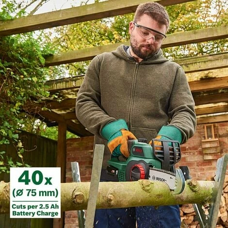 Die Universal Chain 18 ist leicht, kompakt und handlich für einen effektiven und kontrollierten Pflanzenschnitt. Sie wiegt inklusive Akku nur 3 kg. Das Bosch SDS-System ermöglicht einfache, werkzeuglose Einstellungen. Der stabilisierende Führungsschutz mit Stahlkrallen sorgt für einen festen Halt und eine bessere Kontrolle beim Unterschneiden, um Astschäden zu minimieren. Wechsel zwischen verschiedenen Anwendungen, inklusive einfachem Pflanzenschnitt, Abfallbeseitigung und leichtem Sägen von Brennholz.