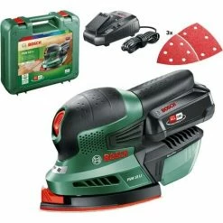 Dieses vielseitige und leistungsstarke Akku-Werkzeug-Multitalent eignet sich perfekt für verschiedenste Projekte. Der PSM 18 LI wurde für die Arbeit in Ecken, an Kanten und an mittelgroßen flachen Oberflächen konzipiert. Schneller Schleifvorsatzwechsel dank SDS-System. Die Deltaspitze ist drehbar, um eine optimale Nutzung des Schleifpapiers sicherzustellen. Dank des Klettverschlusssystems lässt sich Schleifpapier schnell und leicht wechseln. Dieser Multischleifer eignet sich zum Schleifen von Hart- und Weichholz, lackierten und gestrichenen Oberflächen, Metall und Stein und er bewältigt Projekte an Möbeln, Türen, Rahmen, und Treppen. Die Microfilter-Staubbox reduziert Staub.