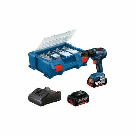 Bosch Akku-Bohrschrauber GSB 18V-55 mit 2 x 4,0 Ah-Li-Ion-AkkuLeistungsstarke 18V-Schlagbohrmaschine der Einstiegsklasse mit bürstenlosem Motor von BoschBohr-Ø Mauerwerk, max. 13 mmSchrauben-Ø, max. 10 mmGewicht exkl. Akku 1.1 kgLieferumfang:2 x Akku GBA 18V 4.0Ah (1 600 Z00 038)82-teiliges Zubehör-SetL-Case Pick & Click (1 600 A02 6W3)Ladegerät GAL 18V-20 Professional | Eigenschaften: Länge: 438 mm, Breite: 391 mm, Höhe: 147 mm, Ausstattung: 2 x Akku, Akkuspannung: 18 V, Akkubeschaffenheit: Li-Ion, Akkukapazität: 4 Ah, Bohrfutterspannbereich, min./max.: 1,5 / 13, Maschine: Ja, Grundpreis: Nein, Leerlaufdrehzahl (1. Gang / 2. Gang): 0 – 460 / 1800, Akkutyp: Lithium-Ionen, Min. Leerlaufdrehzahl 1. Gang: 0, Max. Leerlaufdrehzahl 1. Gang: 460 1/min, Min. Leerlaufdrehzahl 2. Gang: 0, Max. Leerlaufdrehzahl 2. Gang: 1800 1/min, Min. Bohrfutterspannweite: 1,5 mm, Max. Bohrfutterspannweite: 13 mm, Akku im Lieferumfang enthalten: Ja, Akkuanzahl: 2