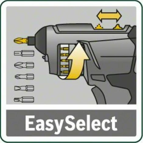 Akku-Schrauber Lithium-Ionen PSR Select. Der Akku-Schrauber PSR Select: Das passende Bit immer griffbereit. Integrierte Bit-Trommel – Die drehbare Bit-Trommel beinhaltet die 12 wichtigsten Schraubeinsätze. Innovatives Bosch EasySelect – Intuitive und leicht zu bedienende Select-Funktion für bequemes Wechseln der verschiedenen Bits. Beleuchtetes Sichtfenster – Über das Sichtfenster können die einzelnen Bits schnell und einfach ausgewählt werden. Kein Memory-Effekt, keine Selbstentladung: Immer einsatzbereit dank Lithium-Ionen-Technologie. Ausdauernd: Bis zu 90 Schrauben mit einer Akkuladung. Kompakte Bauform für beste Handlichkeit und Kontrolle in der Anwendung. PowerLight – Durch die eingebaute Leuchtdiode haben Sie Ihr Werkstück stets gut beleuchtet im Blick. Drehrichtungs- und Ladezustandsanzeige durch LED. Automatische Spindelarretierung zum manuellen Festziehen oder Lösen von Schrauben. Softgrip für einen besseren und bequemen Halt. Micro-USB-Kabel, Netzgerät, 12 Standard-Schrauberbits, Koffer.