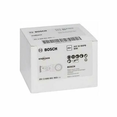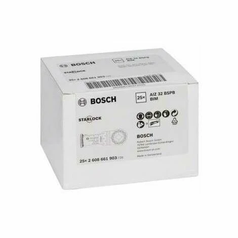 Bosch BIM Tauchsägeblatt AIZ 32 BSPB, Hard Wood, 50 x 32 mm | Eigenschaften: Werkstoff: Bimetall, Ausführung: Tauchsägeblatt, Breite: 32, Gesamtlänge: 50, Modell: AIZ 32 BSPB, Eintauchtiefe: 50, Geeignet für Kunststoff: Nein, Geeignet für Holz: Ja, Geeignet für Stahl: Nein, Geeignet für Edelstahl: Nein, Geeignet für Nichteisen-Metalle: Nein, SB-Verpackt: Ja, Inhalt [Stück]: 25