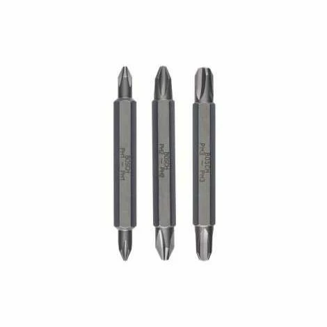 Bosch Doppelklingenbit-Set, 3-tlg., PH1, PH1, PH2, PH2, PH3, PH3, 60 mm | Eigenschaften: Ausführung: Doppelbit, Spezifikation: PH1, PH2, PH3, PH1, PH2, PH3; 60 mm, Klingenlänge: 60 mm, Anzahl der Teile: 6, Antriebsform: Sechskant, Länge mm: 60, VDE-geprüft: Nein, Abtriebsform: Kreuzschlitz Phillips, Kugelkopf: Nein