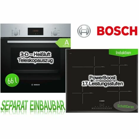 HERDSET Bosch Backofen mit Induktionskochfeld mit Bräterzone Facette 60 cm autark + 3D-Heißluft