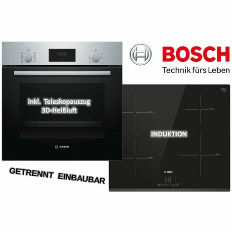Bosch HERDSET INDUKTION AUTARK 3D Heißluft Backofen + Induktions-Kochfeld 60 cm