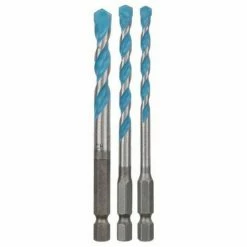 Mehrzweckbohrer-Set HEX-9 Multi Construction. 3-teilig. Robuste Hartmetall-Zentrierspitze: Für präzisen Start und gute Bohrkontrolle. 2 spiralige U-Form: Standard-Lebensdauer/guter Bohrmehlabtransport. Scharfe diamantgeschliffene Schneidkanten für extra lange Lebenszeit in fast allen Materialien. 1/4 Zoll HEX Schaft: Für optimale Kraftübertragung mit Schlagbohrmaschinen und Akku-Schraubern (z. B. Bosch GDR 18 V-EC Professional). Geeignet für praktisch alle Materialien im Innenausbau wie z.B. Beton. Mauerwerk. Ziegelstein. Eternit. Leichtbaustoffe. mehrschichtige Materialien. Keramik und Fliesen. Holz. Kunststoff. dünne Metallbleche. Aluminium. Optimale Ergebnisse beim drehenden und schlagenden Bohren mit Schlagbohrmaschinen. Dank des 1/4 Zoll Sechskantschafts kann in Materialien wie Mauerwerk. Aluminium. Fliese. Holz und Kunststoff können auch Akku Schrauber und Akku Drehschlagschraubern mit 1/4 Zoll Aufnahme genutzt werden. Bohrerfarbe: blau. blank geschliffen. Dieses Set enthält: 3 Mehrzweckbohrer mit Durchmesser: 5 / 6 / 8 mm. Arbeitslänge: 50 / 60 / 50 mm. Gesamtlänge: 100 / 100 / 100 mm.