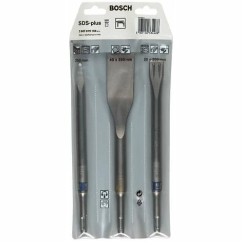 Bosch Meißel-Set SDS-Plus. 3-teilig. 250. 250. 260 x 20. | Hersteller-Nr.: 2607019159 | EAN: 3165140334488 | • 3tlg. Meißel-Set SDS-plus