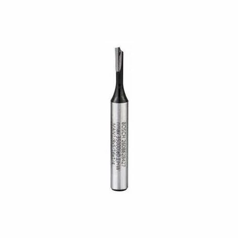 Der Nutfräser Standard for Wood besitzt eine hohe Schneidleistung für kleine und feine Nuten. Mit hochwertigen Schneiden aus Wolframcarbid für Haltbarkeit und zuverlässiges Schneiden. Auch begrenzt das Design des Fräsers die Spangröße und vermeidet damit Rückschlag. Der Fräser ist für das Anfertigen von kleinen, feinen und präzisen Nuten bestimmt. Er ist ideal geeignet für Nuten mit kleinen Abmessungen sowie Schlitze und Fugen und auch das Bohren von kleinen Löchern. Er wird verwendet für Arbeiten in Weich- und Hartholz sowie Holzverbundstoffen. | Eigenschaften: Durchmesser: 3,2 mm, Arbeitslänge: 7,7 mm, Gesamtlänge: 51 mm, Schaftdurchmesser: 1/4 mm