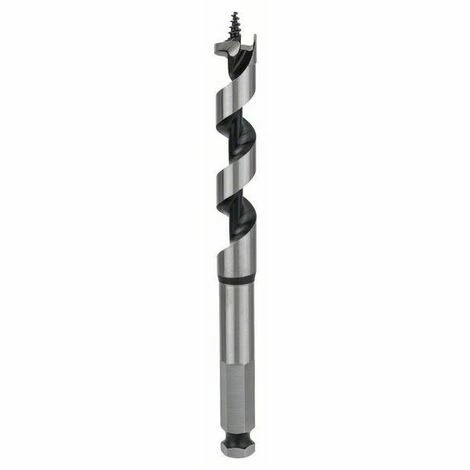 Holzschlangenbohrer, Sechskantschaft, Durchmesser: 15 mm, Arbeitslänge: 100 mm, Gesamtlänge: 160 mm, Schlüsselweite: 11,1 mm, für präzise und saubere Bohrungen, mit präzisionsgeschliffener Hauptschneide für schnelle Bohrungen, nur geringe Bohrkraft erforderlich, hochbelastbarer Bohrkopf mit selbsteinziehender Gewindespitze: zieht den Bohrer auf der gesamten Länge bis zum Durchbruch durch das Material, mit massivem Kernteil und reibungsarmer Spirale für gerade Bohrungen und hohe Spanabfuhr, geeignet für alle Weich- und Harthölzer, sogar in nassem Holz, ideal für Einsatz im Baunebengewerbe, bei Zimmerleuten, Dachdeckern, für Durchgangsbohrungen und Vorbohren von Sparrennägeln und für Stabdübelbohrungen, einsetzbar in allen Bohrmaschinen mit 13-mm-Bohrfutter, Präzisionsgeschliffen für maßhaltige Bohrungen, hoher Bohrfortschritt durch optimierte Wendelgeometrie, hohe Bruchsicherheit, feiner Oberflächenschliff