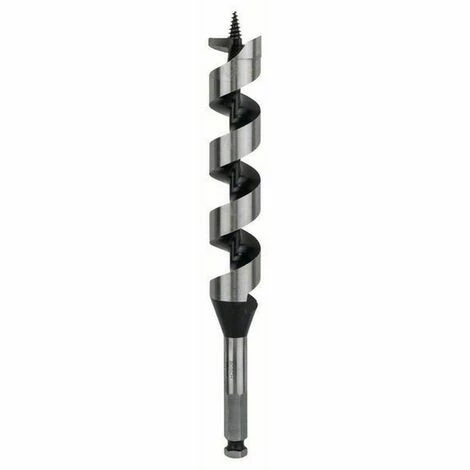 Holzschlangenbohrer, Sechskantschaft, Durchmesser: 28 mm, Arbeitslänge: 160 mm, Gesamtlänge: 235 mm, Schlüsselweite: 11,1 mm, für präzise und saubere Bohrungen, mit präzisionsgeschliffener Hauptschneide für schnelle Bohrungen, nur geringe Bohrkraft erforderlich, hochbelastbarer Bohrkopf mit selbsteinziehender Gewindespitze: zieht den Bohrer auf der gesamten Länge bis zum Durchbruch durch das Material, mit massivem Kernteil und reibungsarmer Spirale für gerade Bohrungen und hohe Spanabfuhr, geeignet für alle Weich- und Harthölzer, sogar in nassem Holz, ideal für Einsatz im Baunebengewerbe, bei Zimmerleuten, Dachdeckern, für Durchgangsbohrungen und Vorbohren von Sparrennägeln und für Stabdübelbohrungen, einsetzbar in allen Bohrmaschinen mit 13-mm-Bohrfutter, Präzisionsgeschliffen für maßhaltige Bohrungen, hoher Bohrfortschritt durch optimierte Wendelgeometrie, hohe Bruchsicherheit, feiner Oberflächenschliff