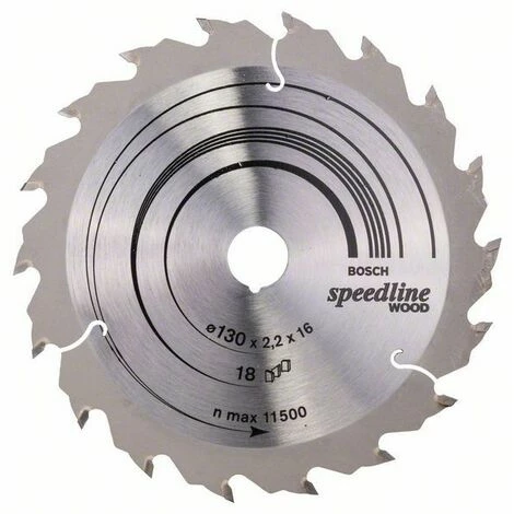 Kreissägeblatt Speedline Wood für Handkreissägen, Außendurchmesser: 130 mm, Bohrung: 16 mm, Schnittbreite: 2,2 mm, Zähnezahl: 18, das schnelle Blatt für Längs- und Querschnitte in allen Holzarten, mittelfeiner Schnitt: ideal für Weichholz, Hartholz, Spanplatten, Schalungsbretter, das neue Kreissägeblatt für den schnellen Trennschnitt längs und quer in Holz und Plattenwerkstoffen, ideal sowohl für grobe Zuschnitte sowie auch für präzise Winkelschnitte, kontrollierter, weitgehend vibrationsfreier Schnitt durch spezielles Zahndesign (2 konkave Wechselzähne, 1 konkaver Flachzahn)