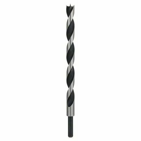 Maschinenholzbohrer mit M-Spitze (2 Vorschneider), Durchmesser: 16 mm, Arbeitslänge: 190 mm, Gesamtlänge: 250 mm, Schaftdurchmesser: 10 mm, Bohrer mit CBN-geschliffener M-Spitze, besondere Spiralform verhindert Verklemmen und sorgt für rasche Spanabfuhr, Bohrerfarbe: blank, schwarz, Zweischneider, zylindrisch, zweispiralig