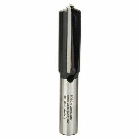 Nutfräser mit Überlänge, zweischneidig, Hartmetall, Schaft: 12 mm, Durchmesser: 16 mm, Arbeitslänge: 40 mm, Gesamtlänge: 81 mm, zum universellen Fräsen, Nuten oder Falzen mit Oberfräsen, zum Formatieren von regelmäßigen oder geschweiften Werkstücken, geeignet für Massivholz, Plattenwerkstoffe wie Span- oder MDF-Platte, Kunststoffe oder abrasive Materialien wie Corian, größere Arbeitslänge für höhere Flexibilität in der Anwendung