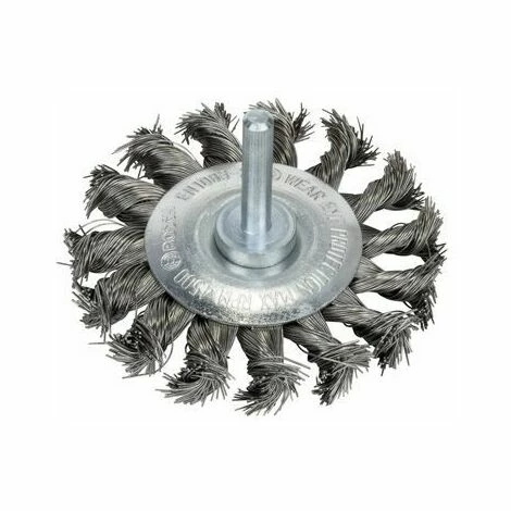 Scheibenbürste mit Spannschaft 6 mm, Edelstahlbürste für Bohrmaschinen, gezopfter Draht, Drahtstärke: 0,35 mm, Durchmesser Bürste: 70 mm, Bürstenbreite: 14 mm, Drehzahl, max. min-1: 4500 U/min, optimal geeignet für das Reinigen von Schweißnähten auf Edelstahl, geeignet für schwere Reinigungsarbeiten auf kleinen Flächen, in Rillen oder an Kanten auf Edelstahl, Aluminium oder Buntmetallen, wie entfernen von starkem Rost, entlacken, entschlacken, entgraten, entzundern