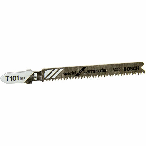Das T 101 BIF Stichsägeblatt von Bosch Professional eignet sich zum Schneiden von Laminatböden oder Holz und erzeugt dabei saubere, gerade Schnitte. Das spitzverzahnte Sägeblatt für Stichsägen verringert Ausrisse im Material beim schneiden.