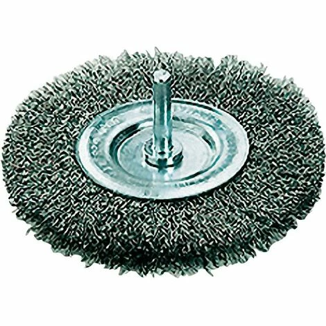 Scheibenbürste mit gewelltem Draht für leichte bis mittelschwere Reinigungsarbeiten auf kleinen Metallflächen, in Rillen oder an Kanten.