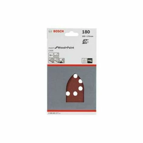 Bosch Schleifblatt C430, 100 x 170 mm, 180, 8 Löcher, Klett, 5er-Pack | Eigenschaften: Länge: 170, Abmessung: 100 x 170, Breite: 100, Korngröße: 180, Spezifikation: 100 x 170 mm, Kornart: Korund, Anzahl Löcher: 8, Maschinentyp: , Materialanwendung: Holz/Farbe, Mit Löchern: Ja, Inhalt [Stück]: 5
