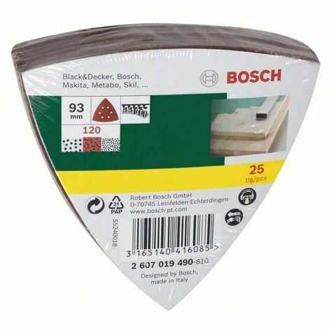 Bosch Schleifblatt-Set für Delta-Schleifer. 25-teilig. 9 | Hersteller-Nr.: 2607019490 | EAN: 3165140416085 | •25-teiliges Schleifblatt-Set für Deltaschleifer. K