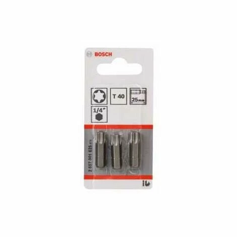 3ST Torxschr.Bit T40 XH 25mm | Eigenschaften: Ausführung: Bit, Abmessung: T40, Spezifikation: T40, 25 mm, Klingenbreite: 50, Klingenlänge: 25 mm, Klingenmaterial: Werkzeugstahl, Antriebsform: Sechskant, Norm (Antriebsform): DIN 3126 / ISO 1173, Vergütung Klingenmaterial: extra hart, Länge mm: 25, Grundpreis: Ja, Abtriebsgröße: 40, Verpackungseinheit (Stück): 3, VDE-geprüft: Nein, Torsion: Nein, Antriebsgröße (in Zoll): 1/4, Antriebsgröße (Gewindegröße): 6,3, Abtriebsform: Torx, Kugelkopf: Nein