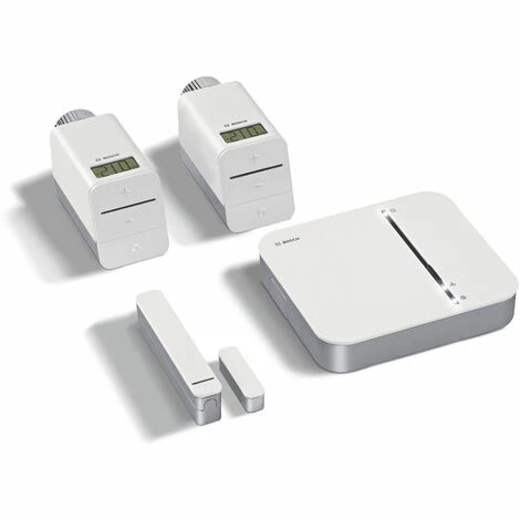 Machen Sie ihr Zuhause mit dem praktischen Raumklima Starter-Paket smart. Das Set ist der ideale Einstieg in Ihr smartes Wohnen und enthält die Steuerungszentrale, den Controller, einen Tür-/Fensterkontakt sowie zwei Heizkörperthermostat.In Kombination ermöglichen die vernetzten Geräte eine individuelle Temperaturregelung für jeden einzelnen Raum. Schaffen Sie so ein Zuhause, das mitdenkt und sparen Sie langfristig wertvolle Zeit und Geld. Beispielsweise verhindert die Fenster-Offen Erkennung Energieverschwendung beim Heizen.Bei Bedarf erweitern Sie Ihr System, indem Sie zusätzliche Produkte in Ihr Bosch Smart Home System integrieren.