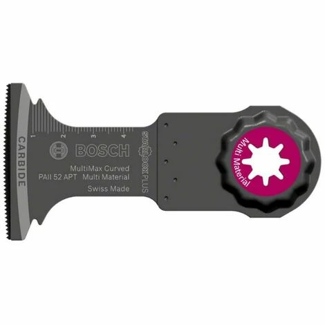 MultiMax Carbide Tauchsägeblatt PAII 52 APT Multimaterial. Das Präzisionsblatt Starlock PAII 52 APT MultiMax sorgt für Präzisionsschnitte beim Arbeiten mit gehärtetem Metall. Seine hochwertigen Hartmetallzähne zertrennen abrasives und hartes Material bei höchster Verschleißfestigkeit. Die abgerundete Blattspitze (Curved-Tec) mit einer Breite von 52 mm erhöht die Haltbarkeit. indem Zahnbruch verhindert wird. Zugleich ermöglicht sie besonders breite Tauchschnitte in Metall und abrasiven Materialien ohne Rattermarken und Abplatzungen. Das Blatt schneidet durch Metallbleche. abrasive Materialien wie Epoxidharz. GFK (glasfaserverstärkter Kunststoff). CFK (kohlefaserverstärkter Kunststoff). Gipskartonplatten. Zementfaserplatten und faserverstärkte Kunststoffe. Es ist für alle Starlock Plus- und Starlock Max-Multifunktionswerkzeuge geeignet. Das System Starlock Plus ermöglicht sehr schnelle. tiefe und vielfältige Tauchschnitte. Zudem ermöglicht das Starlock-Aufnahmesystem schnelle Blattwechsel in drei Sekunden ohne Blattberührung. Das spezielle Starlock-Aufnahmesystem ermöglicht durch seine dreidimensionale enge Passung maximale Kraftübertragung zwischen Maschine und Zubehör.